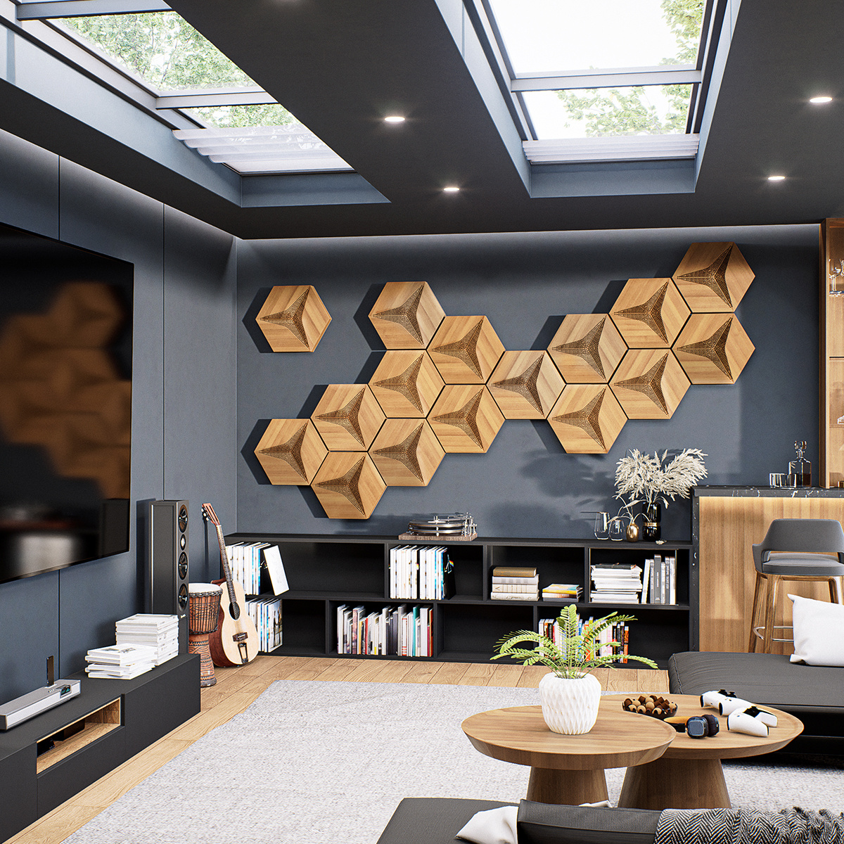 Modulare Sechseckkonstruktion, kombinierbar mit HEXAGO CM-D Paneelen und anderen FORM AT WOOD Dekorpaneelen wie CARO MINUS und CARO Lesen Sie mehr