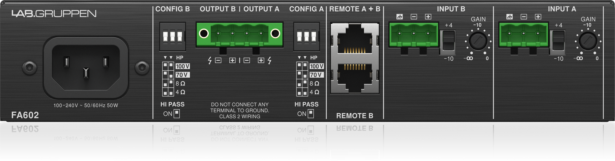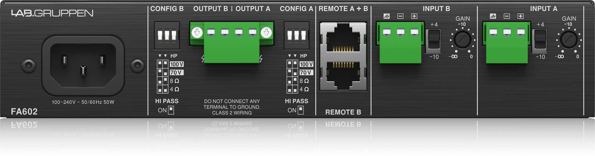 • Manipulationssichere Verstärkungsregler für jeden Kanal an der Rückseite