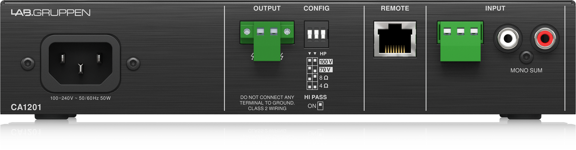 Der Lab.Gruppen CA1201 ist ein Verstärker für gewerbliche Installationen. Die einfache Benutzeroberfläche macht die Verwendung für alle Benutzer einfach. Darüber hinaus ist der Verstärker kompakt (1U-Rack-Format) und während der Installation einfach zu verbergen. Der CA1201 ist ein 1x 120-Watt-Verstärker mit Direktantrieb für konstante Leistung und Zuverlässigkeit. Auf der Rückseite des Verstärkers befindet sich ein RJ-45-Ethernet-Anschluss zum Anschließen einer Fernbedienung.