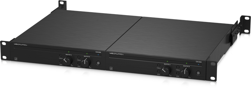 Der Lab.Gruppen CA1202 ist ein Verstärker für kommerzielle Installationen. Die einfache Schnittstelle macht es für jedermann einfach zu bedienen und der Verstärker ist außerdem kompakt (1 HE Rackgröße) und in einer Installation leicht zu verstecken. Der CA1201 ist ein 2x 120 Watt Verstärker mit Direktantrieb für konstante Leistung und Zuverlässigkeit. Auf der Rückseite des Verstärkers befindet sich eine RJ-45-Ethernet-Buchse zum Anschließen einer Fernbedienung.