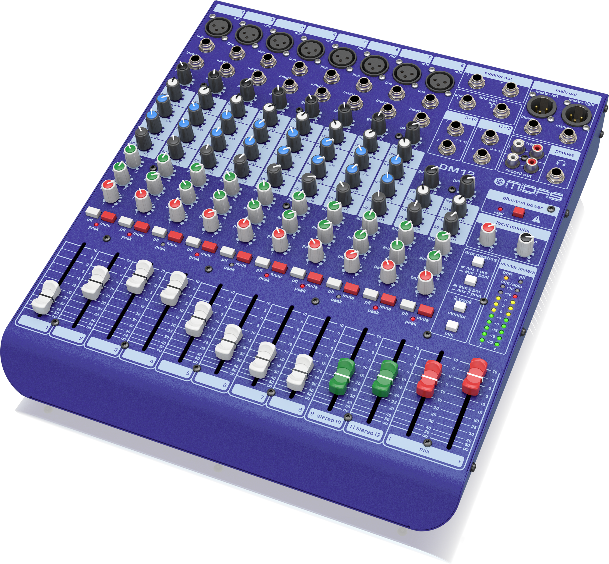 Die kleinen, kompakten Midas (DDA) 12 Eingangskanäle sind die Lösung für Situationen, in denen ein einfacher und dennoch hochwertiger Tonmischer erforderlich ist.