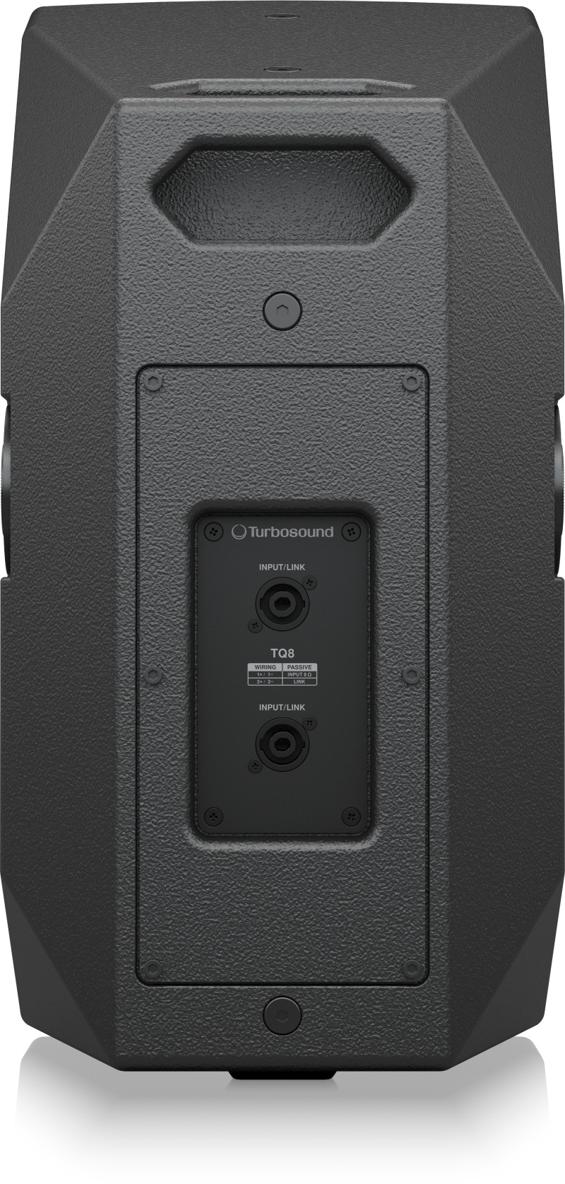The TQ8 loudspeaker features an 8" neodymium low frequency driver with a low mass voice coil for improved transient response, and an aluminium dome 1.4" neodymium high frequency compression driver mounted onto an 80° horizontal by 30° vertical rotatable exponential horn paired with a dendritic plane wave transformer (DPWT) waveguide. All drivers are matched with an internal passive crossover network in a reflex-loaded enclosure cabinet. The rear panel connector plate carries 2 x Neutrik speakON* NL4 connectors for input and link connections to additional enclosures.