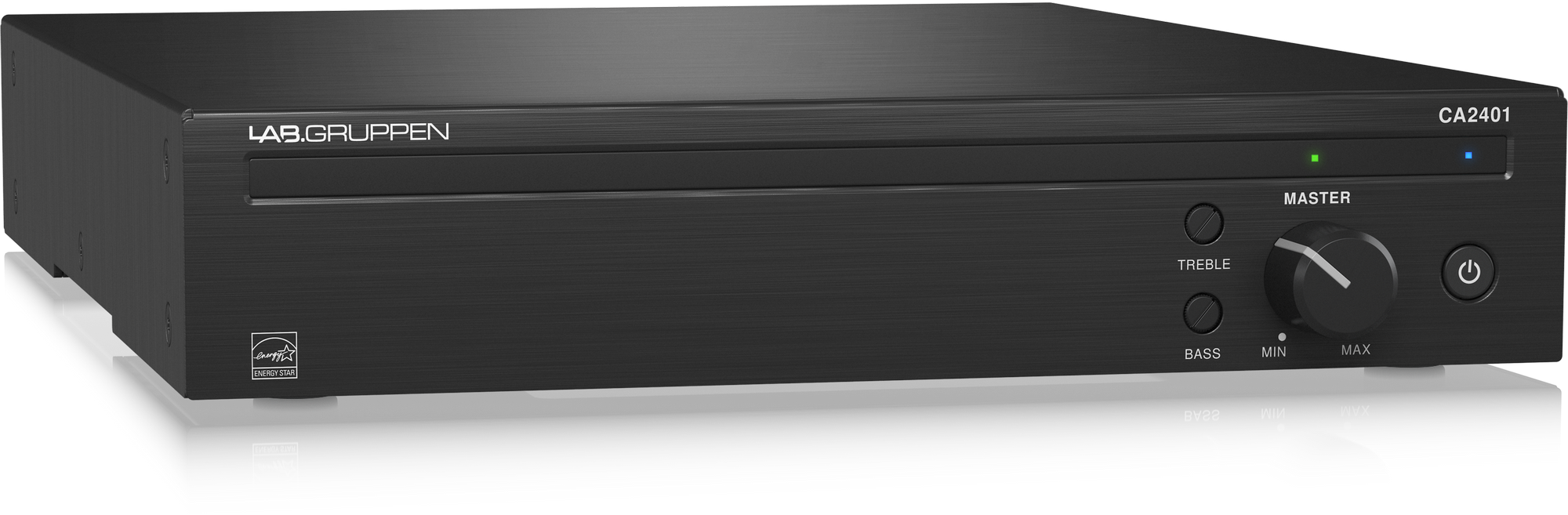 The Lab.Gruppen CA2401 is an amplifier for commercial installations. The easy interface makes it easy to use for everyone and in addition the amplifier is compact (1U rack format) and easy to hide during an installation. The CA2401 is a 1x 240 Watt amplifier with a direct drive for constant performance and reliability. At the rear of the amplifier there is an RJ-45 Ethernet connection for connecting a remote control.