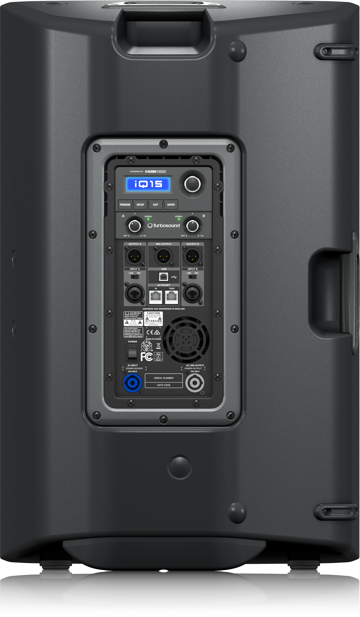 The Turbosound iQ15 is a 15" self-powered speaker with a full range frequency response. The 15" LF driver provides a wide response with an amazing low-end sound. The Speaker has a 1" HF driver for the higher frequencies. The iQ-Series includes 2500 Watt Klark Teknik amplification and Signal Processing software for full control over the system. The system is easy to control via the LCD-screen with buttons and a rotary switch. The Built-in Spatial Contour Control (SCC) technology allows you to adapt your frequency respons to multiple speaker placements.