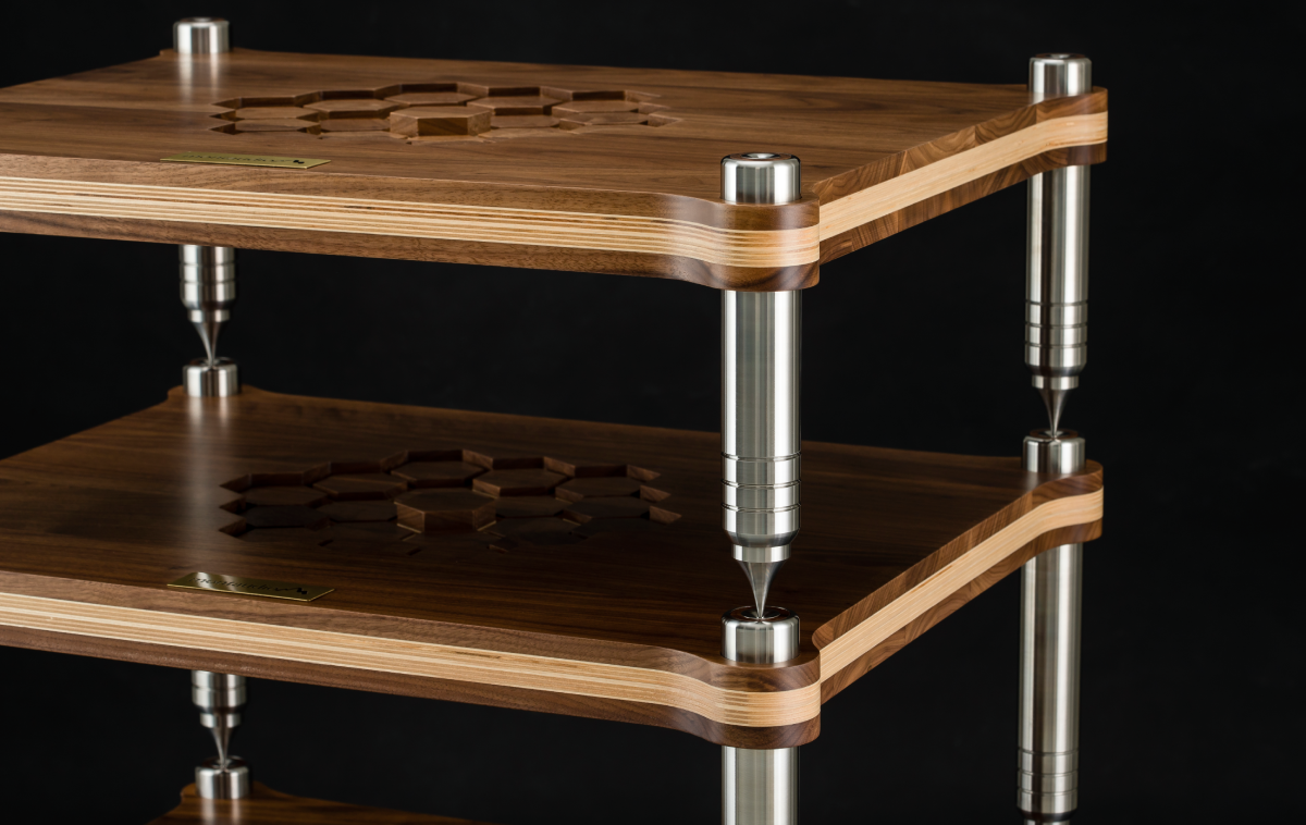 La gamme de racks HiFi de référence Manuka MR de Montaudio est un système de rack HiFi modulaire et hautement sophistiqué, avec des structures innovantes de contrôle et d’amortissement des vibrations multidirectionnelles intégrées dans ses étagères luxueuses en bois de noyer (Walnut) et de bouleau (Birch) ainsi que ses pieds robustes en acier inoxydable massif amortis. Au cœur de la remarquable capacité d’amortissement des vibrations du Manuka MR se trouve le design novateur Montaudio Vibration Isolation Pillar (MVIP), où le centre de chaque étagère présente un motif de piliers en nid d’abeille usinés de manière propriétaire à différentes hauteurs, donnant son nom au système. Lorsqu’il est utilisé avec les amortisseurs d’isolation Tongariro TR ou Rangitoto R1 conçus en interne, les vibrations émanant du centre de l’équipement rencontrent la couche supérieure en noyer du MVIP, qui est séparée par un espace d’air de la couche supérieure environnante de l’étagère, forçant la vibration à descendre le pilier jusqu’à la couche de contreplaqué de bouleau premium et à dissiper son énergie à la frontière et dans les couches inférieures. Le design est tout aussi efficace pour dissiper l’énergie des vibrations aériennes provenant de la musique forte, isolant l’équipement des perturbations externes. Un autre design innovant est le Montaudio Isolation Pod (MPOD), qui se trouve aux coins de chaque étagère, offrant une connexion sécurisée mais amortie à chaque pied grâce à son design sandwich en acier inoxydable-noyer-acier inoxydable. Doté d’un cratère extra-profond, il fait partie du système Montaudio Secure Fit (MSEC) conçu en interne, où la pointe effilée allongée élégante sur chaque pied s’adapte parfaitement au MPOD, formant une connexion hautement sécurisée entre les étagères. Le MSEC comprend également un collier rotatif caché dans chaque pied pour permettre un réglage précis de la hauteur de chaque pointe effilée, garantissant un équilibre parfait entre ajustement et esthétique. Entièrement compatible avec le MSEC, les pieds en acier inoxydable massif à triple anneau élastomère brevetés assurent une connexion amortie au sol. Un choix de packs de pieds de 170 mm, 220 mm, 270 mm ou 320 mm en finition satinée élégante est disponible pour personnaliser la hauteur des étagères, tandis que chaque étagère luxueuse en bois de noyer et de bouleau est généreusement dimensionnée à 650 mm par 550 mm, avec une épaisseur de 42 mm pour supporter les équipements les plus lourds jusqu’à 100 kg par étagère. Solide, Spacieux, Splendide – laissez-vous émerveiller par sa beauté ingénieuse.