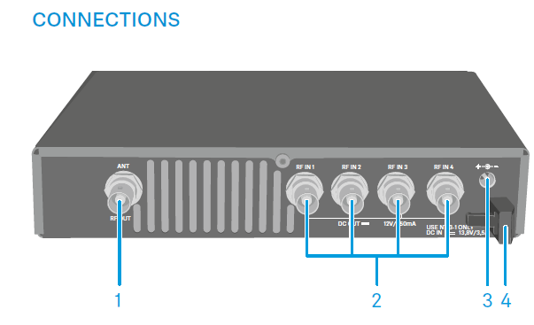 Actieve antennecombiner met DC-stroomverdeling voor IEM-zenders. Inclusief (1) NT 3-1-EU voeding en (4) BNC-kabels. Lees meer