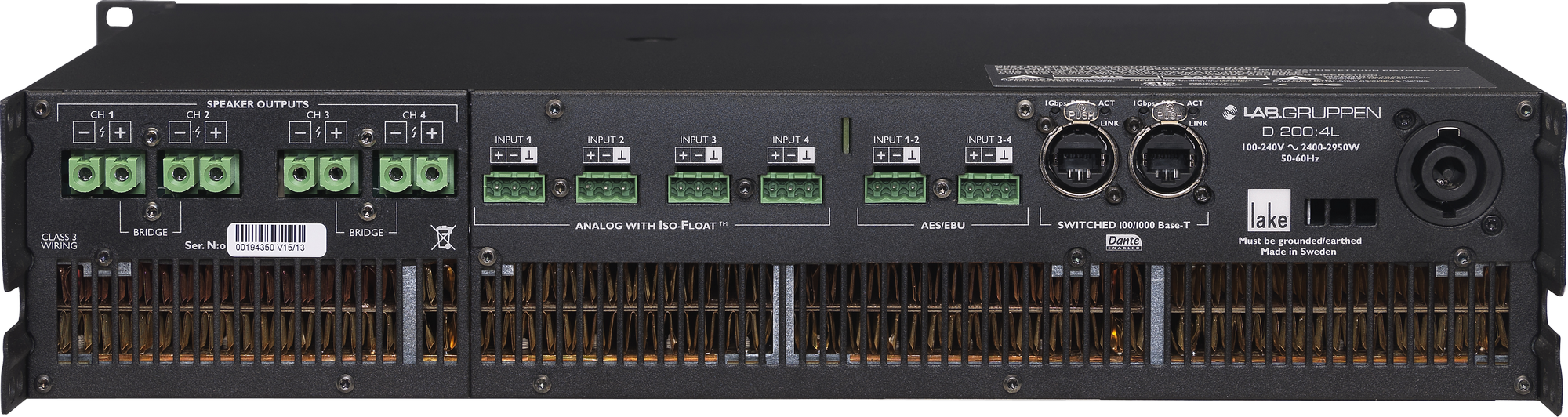 20.000 Watt versterker met vier outputs, LAKE digitale signaalprocessing en Dante Digitale Audio Networking.