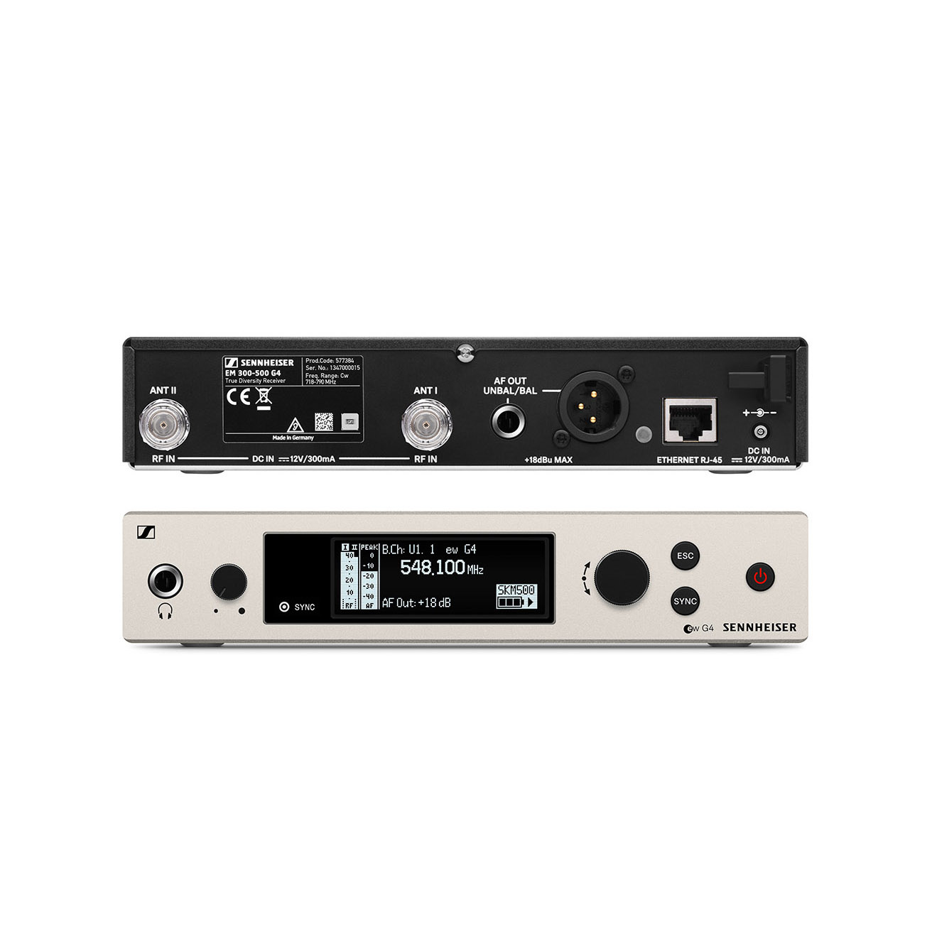 DELIVERY INCLUDES • EM 300-500 G4 true diversity receiver • SK 500 G4 bodypack transmitter • MKE 2 clip-on microphone • GA 3 rackmount set • 2 AA batteries • 2 rod antennas • power supply • snelstartgids • veiligheidsgids • verklaring van de fabrikant