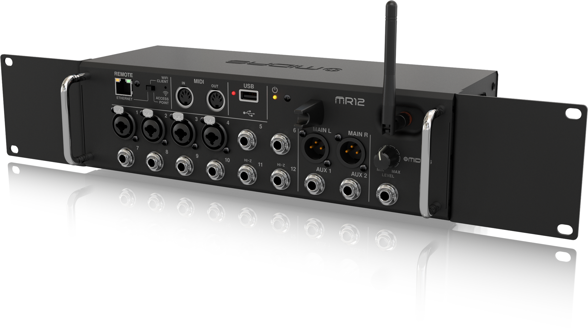 De Midas MR12 is een draagbare mixer met 12 ingangen en 6 aux bussen. De MR12 is gehuisvest in een stevig stagebox design waardoor je hem overal kunt plaatsen. De mixer kan worden aangestuurd met iPad- en Android-tablets via de ingebouwde router. Hierdoor kan alleen jij nog aan je mix komen en zit je niet de gehele avond vast achter je tafel. Het is goed te gebruiken voor zowel live- als studiotoepassingen.