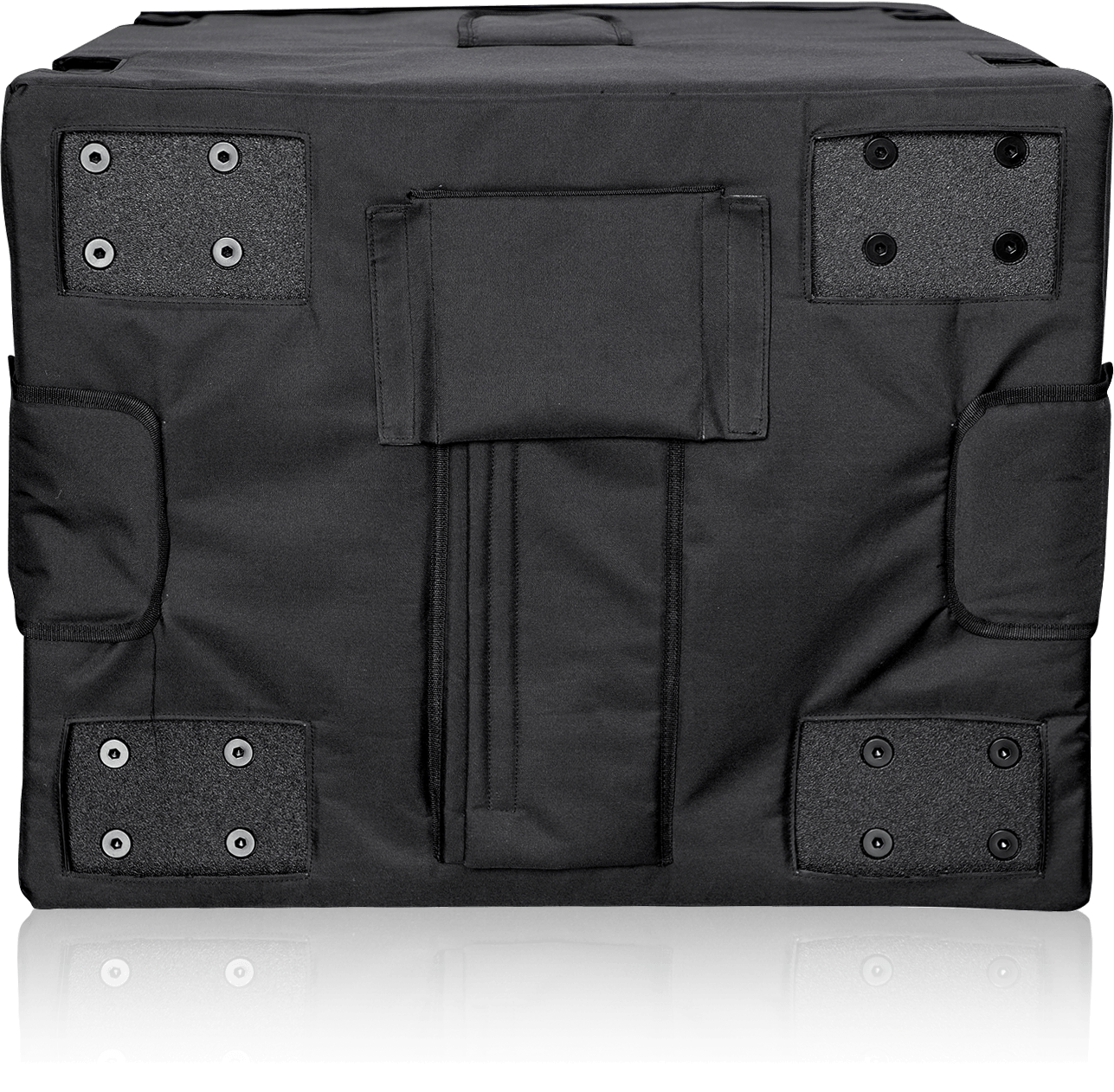 Openings in cover allow access to built-in cabinet handles, rear input panel and pole mount