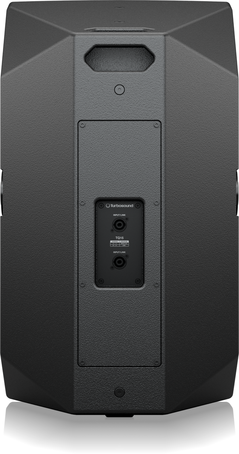 The TQ15 loudspeaker features an 15" neodymium low frequency driver with a low mass voice coil for improved transient response, and an aluminium dome 1.4" neodymium high frequency compression driver mounted onto an 80° horizontal by 30° vertical rotatable exponential horn paired with a dendritic plane wave transformer (DPWT) waveguide. All drivers are matched with an internal passive crossover network in a reflex-loaded enclosure. The rear panel connector plate carries 2 x Neutrik speakON* NL4 connectors for input and link connections to additional enclosures.