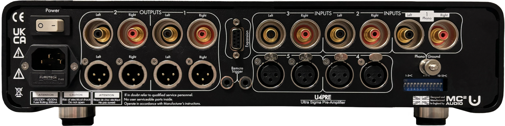 The U4PRE is not just a pre-amp – It also features a highly configurable ultra premium phono input, with an ultra-precise RIAA recovery stage – suitable for use with both moving magnet and moving coil cartridges, it offers users an unparalleled sonic experience with an extensive range of turntables/cartridges. Adjustment comes in the form of 8 switch selectable capacitances from 100pF to 470pF, and 7 resistances from 85R to 500R (with an 8th for a 47k moving magnet setting).